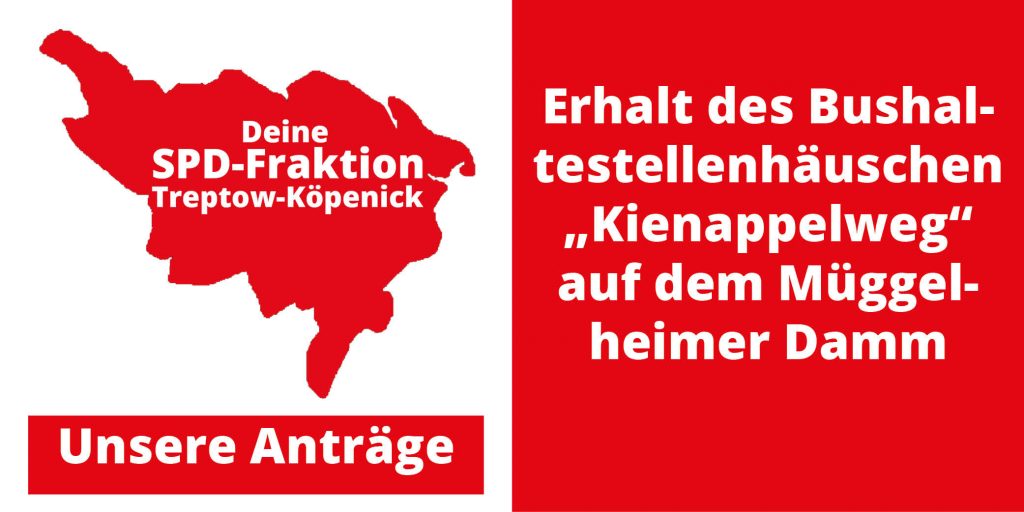 Gemeinsamer Antrag der SPD, Die Linke und Bündnis90/ Die Grünen Das Bezirksamt TK wird ersucht, die Kürzungen, welche in den Fördervorschlägen der Verwaltung des Jugendamtes zur Förderung der Projekte der … - Erhalt des Bushaltestellenhäuschen „Kienappelweg“ auf dem Müggelheimer Damm