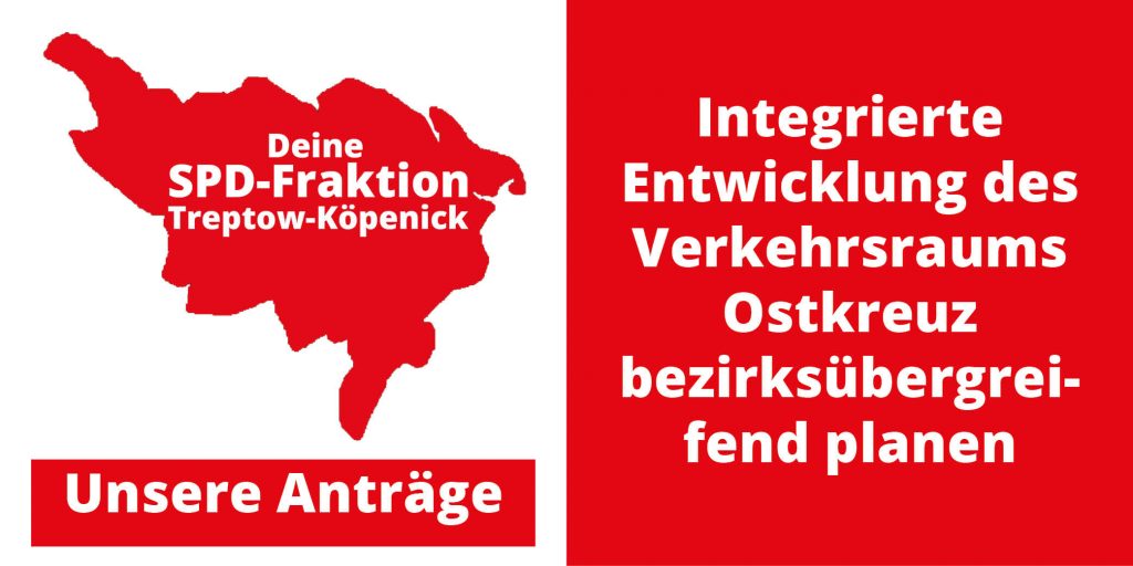 Gemeinsamer Antrag der SPD, Die Linke und Bündnis90/ Die Grünen Das Bezirksamt wird empfohlen, sich gegenüber den zuständigen Stellen dafür einzusetzen, dass das Bushaltestellenhäuschen „Kienappelweg“ auf der Müggelheimer Damm in … - Integrierte Entwicklung des Verkehrsraums Ostkreuz bezirksübergreifend planen